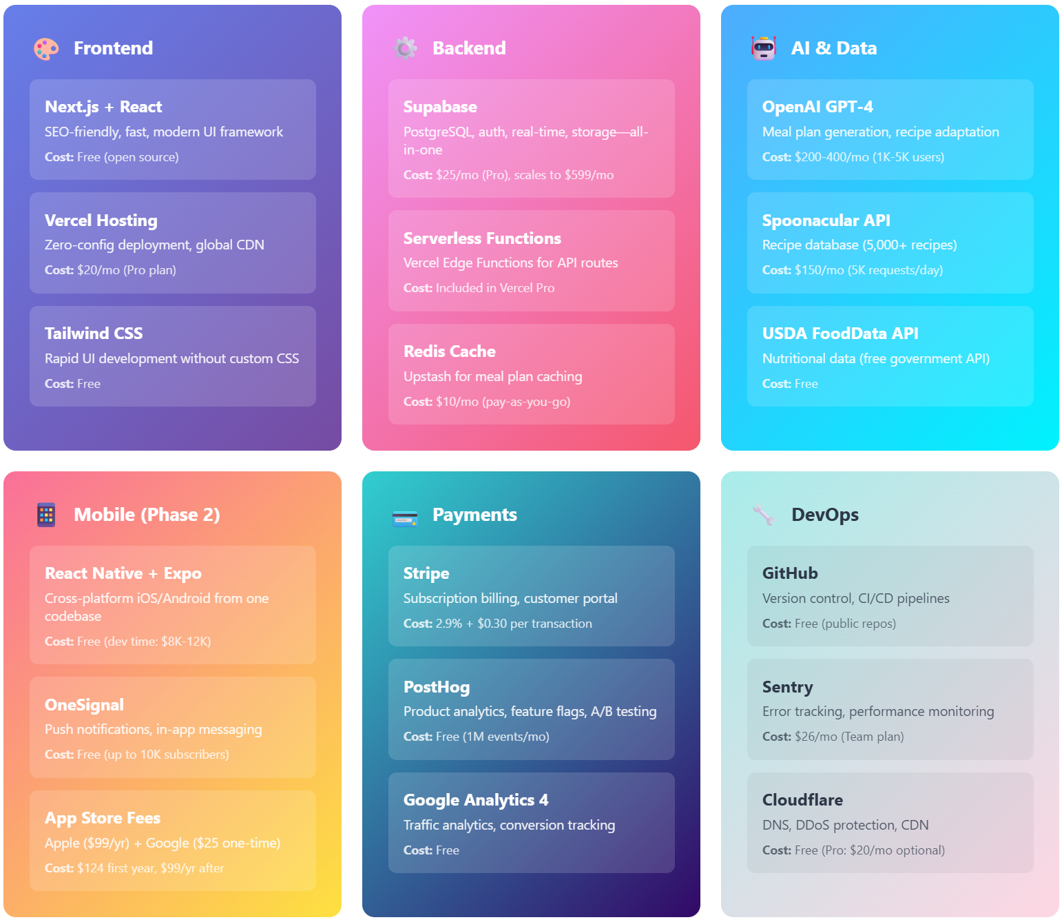 What I love about this section: It assumes you're a "vibe-coder" (my term for pragmatic builders who leverage existing tools) rather than a Google-scale engineering team. The recommendations are grounded in what's actually achievable for a small team or solo founder.